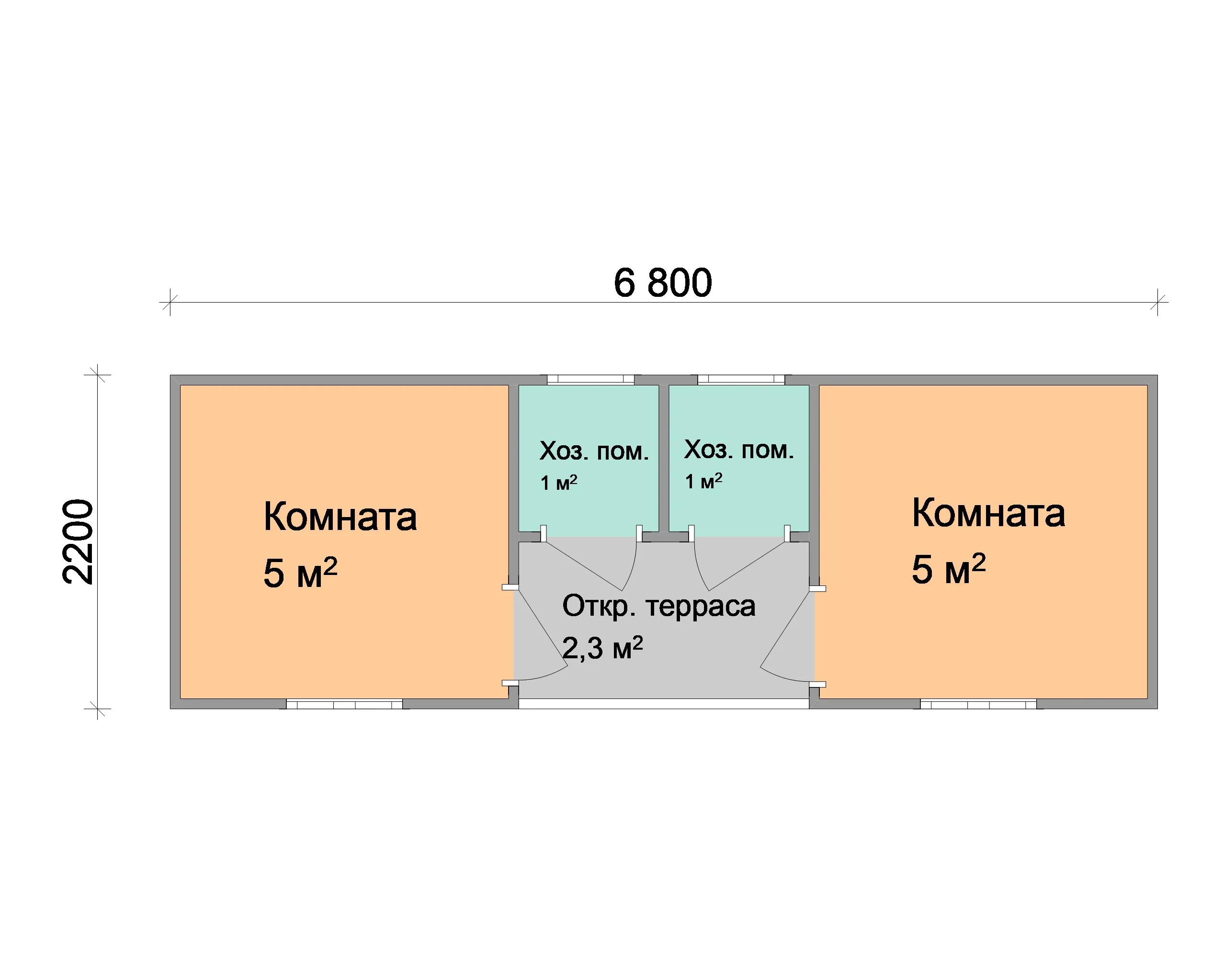 Дачная бытовка Тюльпан6.8x2.214.96ДВП-Оргалит: